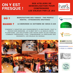 ✏️ Lien d’inscription : https://www.helloasso.com/associations/hop-la-transition/evenements/on-y-est-fresque-strasbourg-2?fbclid=IwAR3nNyS-kgnC7-Z9u9IdcyvpvTdyvcow7DQK79jK1aT21ojZ-FciTflZe1Q