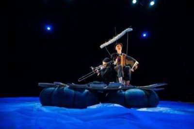 Deux musiciens dérivent sur un radeau quelque part sur la Mer Noire.