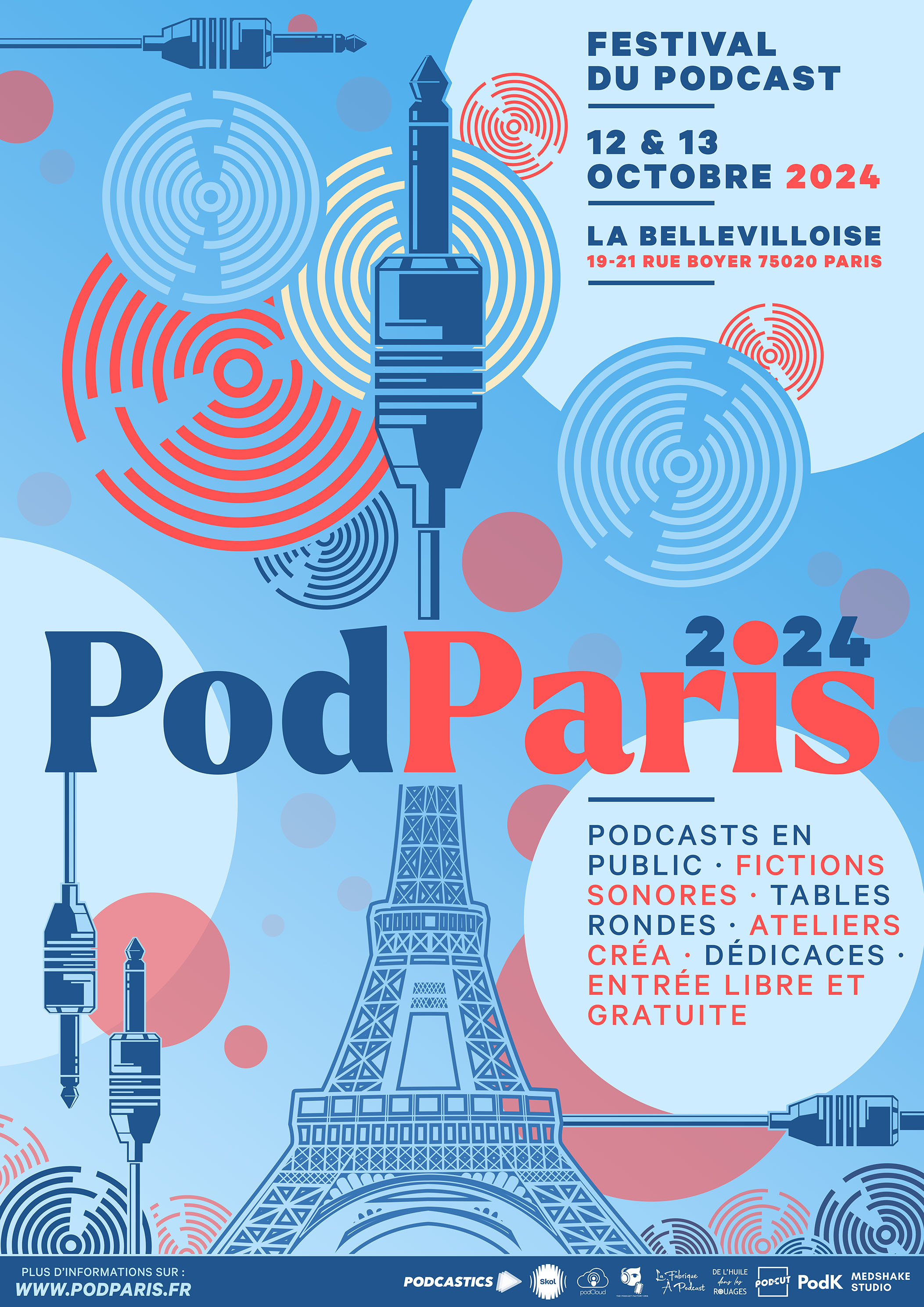 PodParis, le festival du podcast. Durant deux jours, plusieurs podcasts se succéderont sur scène et en public (ainsi qu'en direct sur Internet). Diverses thématiques seront abordées (manga, true crime, tech, sexualité, série et cinéma,...).