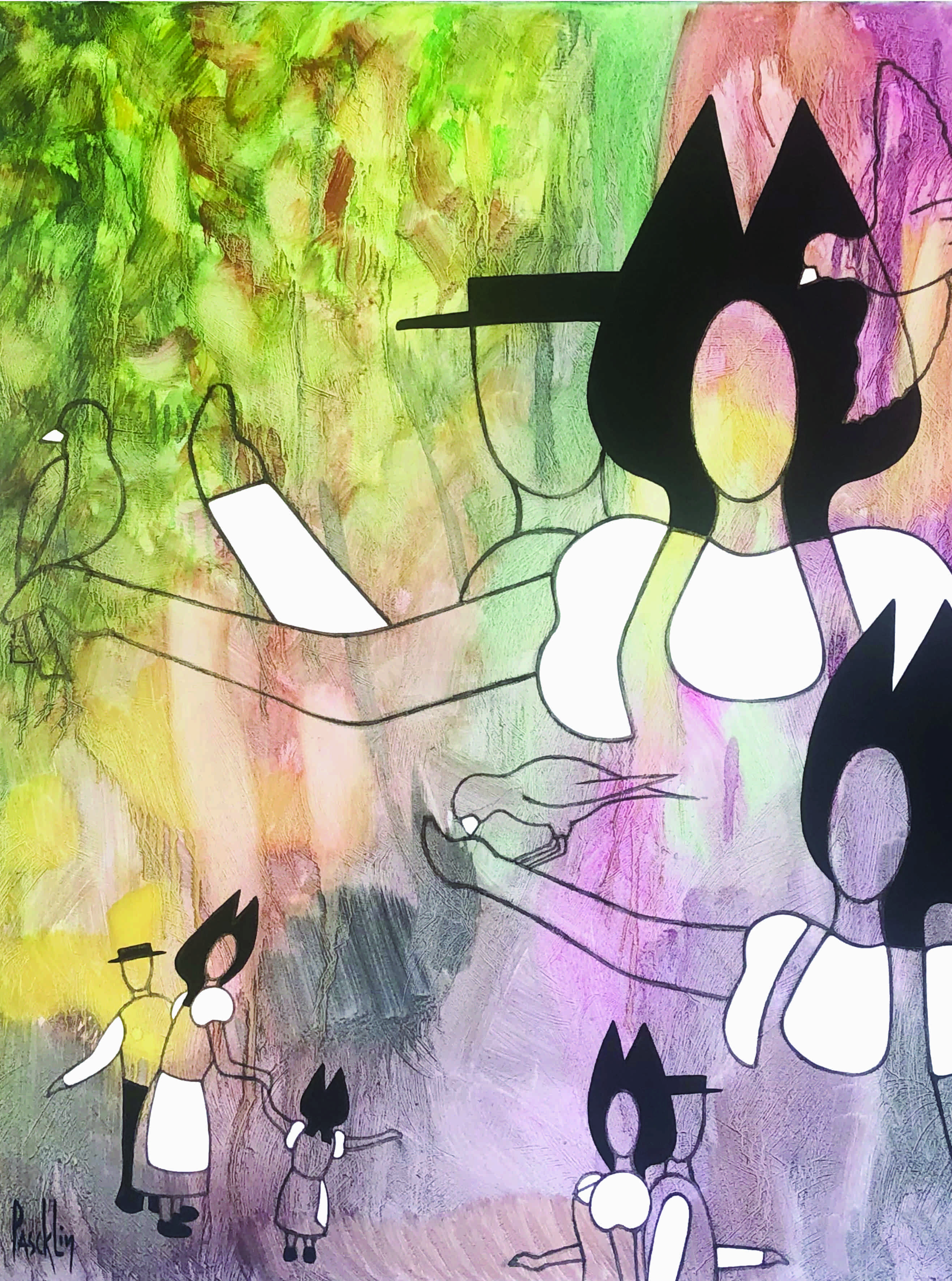 Ses peintures revisitent avec une écriture toute contemporaine ce folklore intemporel et redonnent vie à toute une époque qui a marqué nos mémoires.