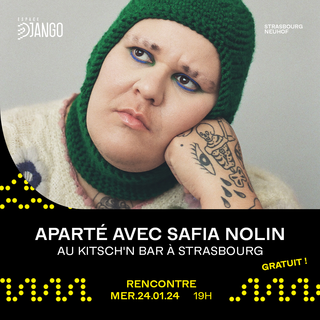 Un format pour prendre le temps de donner la parole aux artistes de la programmation Django. Un échange convivial et détendu, dans un lieu qui l’est tout autant, pour revenir sur le parcours de l’artiste, sa place dans la société, ses interrogations, ses combats… Safia Nolin nous fait l’honneur de cet aparté pour la découvrir autrement et appréhender encore mieux son concert du lendemain. Bienvenue au Kitsch’n !