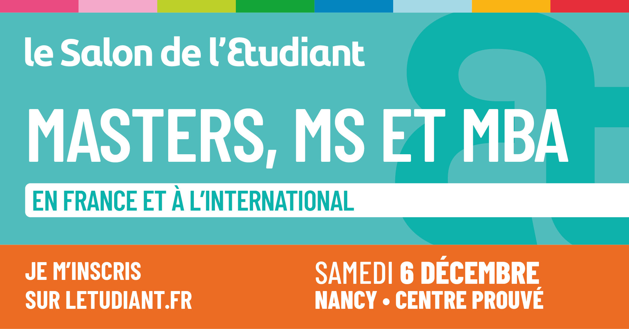 Le Salon masters, MS et MBA, en France et à l’international à Nancy ouvrira ses portes pour sa 1e édition le samedi 06 décembre 2025 au Centre Prouvé ! Véritable lieu d’échanges et de découvertes, cet événement incontournable de l’enseignement supérieur est organisé sous le Haut-Patronage du Ministère de l'Education nationale, de l'Enseignement Supérieur et de la Recherche.