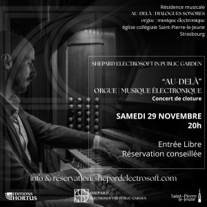 Sur l’orgue historique Silbermann – Muhleisen – Kern (1780), SHEPARD electrosoft in public garden explore, superpose et mélange les tombes acoustiques et électroniques.