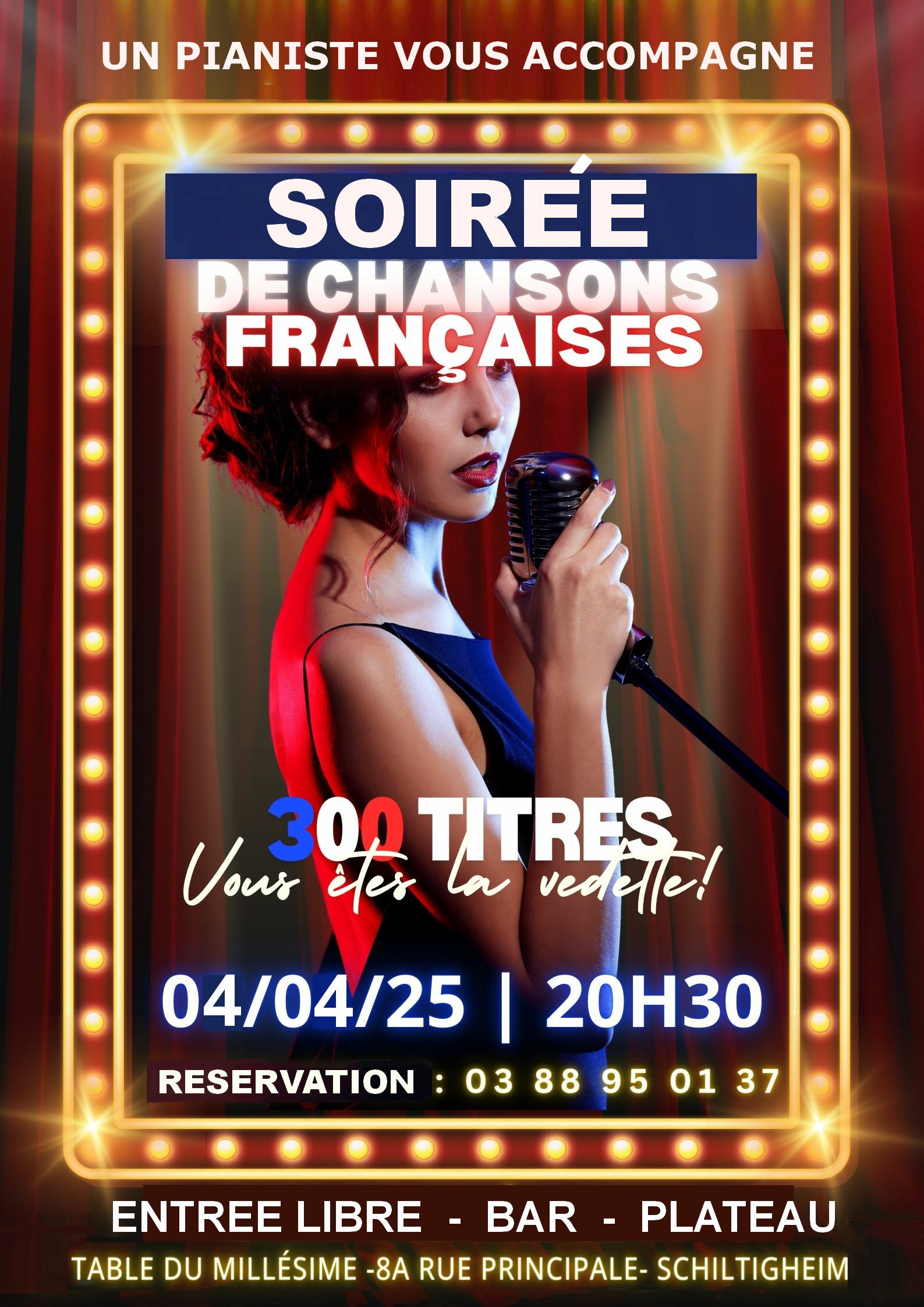 Soirée de chansons françaises avec pianiste