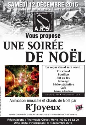 L’A.R.S. vous propose une "soirée de Noël" avec repas, animation musicale et chants de Noël (par R’Joyeux).
