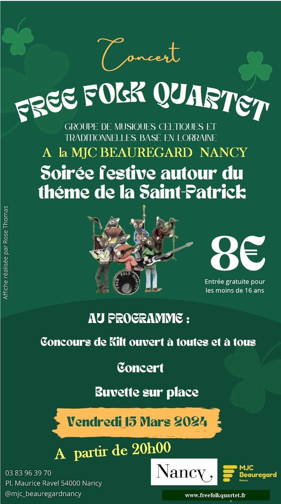 Free Folk Quartet, groupe référence du folk en Lorraine, vous proposera un concert sur le thème de la Saint Patrick.