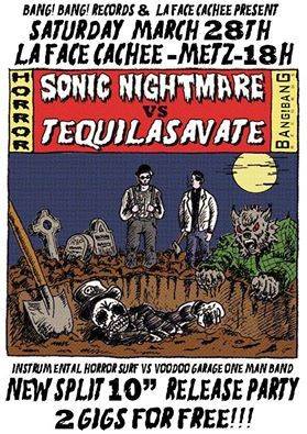 Sortie du split 10" vinyl "Sonic Nightmare VS Tequilasavate" et release party à LaFace Cachee à Metz à 18h!