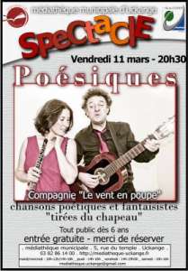 Le principe est simple : une charmante hôtesse passera dans le public et lui fera tirer du chapeau, des cartes qui révéleront aux spectateurs des textes magnifiques, des auteurs, des époques, des devinettes, mille occasions de chanter, de découvrir, redécouvrir et de vivre la poésie française du XVIème siècle à nos jours.
