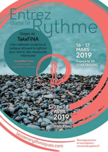 même sans connaissance musicale préalable. A l’aide de syllabes rythmiques, parlées puis chantées, de pas et de claps, les participants vont, de manière progressive et ludique, expérimenter une superposition de rythmes différents dans laquelle se succèdent, pour chacun, des phases d’immersion dans le rythme et des phases de désorientation ou de "chaos" qui sont un élément central de l’apprentissage dans un processus TaKeTiNa .Taketina développe la présence intérieure et nous ouvre à une conscience accrue de nos dynamiques personnelles, tout en favorisant le lâcher- prise et la détente, la concentration et la gestion créative des périodes de crise .
