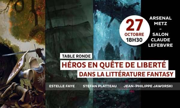 Dans le cadre du mois de l’imaginaire, grande fête autour des littératures de science-fiction, de fantasy et de fantastique, le festival Le Livre à Metz - Littérature & Journalisme, la Librairie D’en Face et le festival Imaginales vous invitent à la table ronde Héros en quête de liberté dans la littérature fantasy, animée par Stéphanie Nicot (directrice artistique du festival Imaginales). Nous aurons le plaisir d’accueillir les auteurs, Estelle Faye, Stefan Platteau et Jean-Philippe Jaworski.