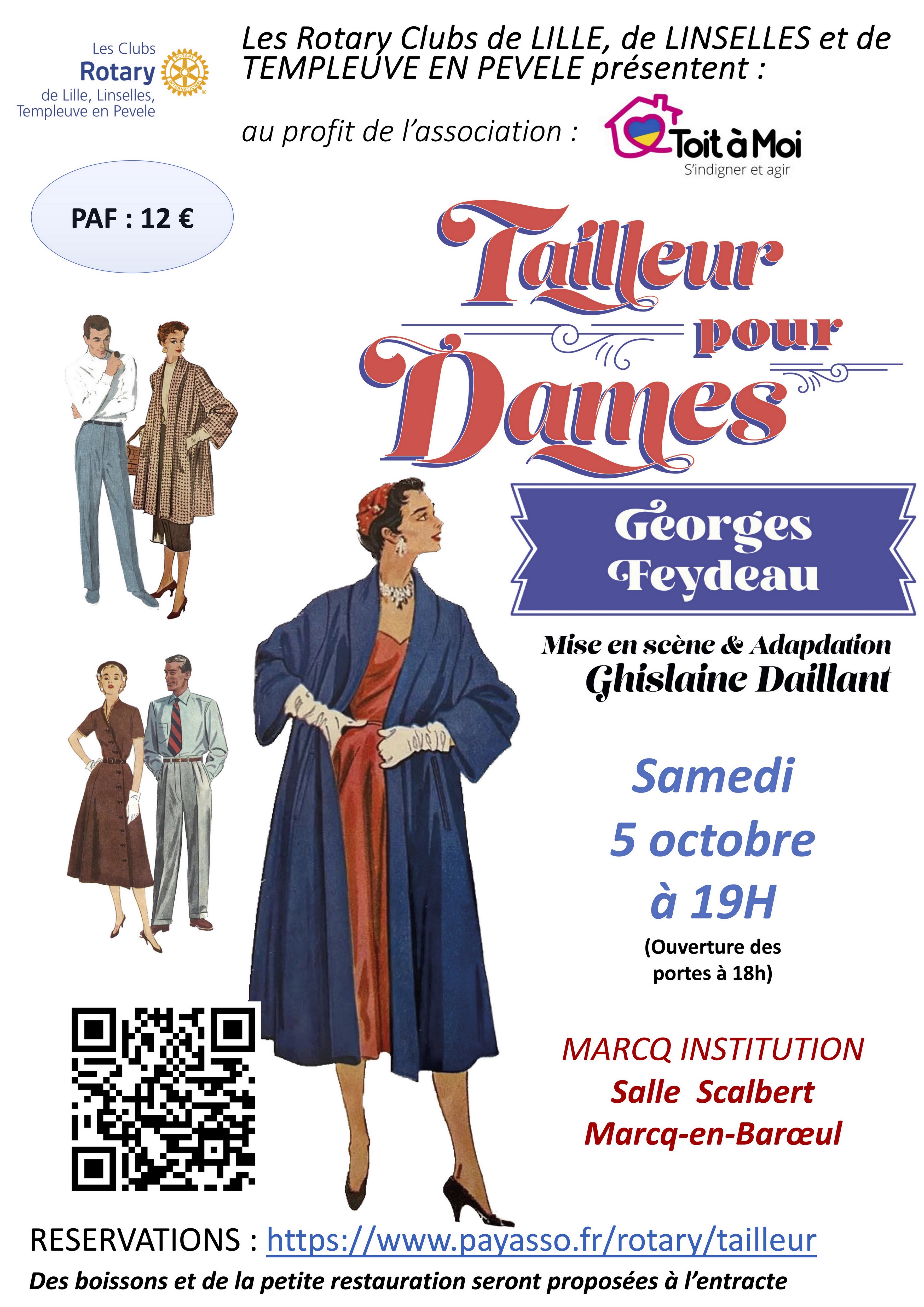 Les Rotary Clubs de LILLE, LINSELLES et TEMPLEUVE EN PEVELE vous proposent une soirée théâtre avec la pièce « Tailleurs pour dames » de Georges Feydeau le samedi 5 octobre 2024 à partir de 19h en salle Scalbert à l’Ecole Marcq Institution.