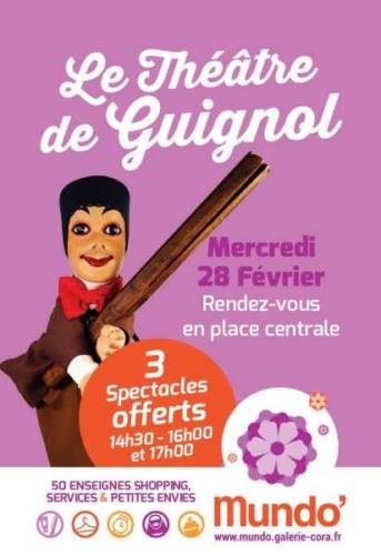 Devinez qui revient mercredi prochain - Eh oui, vous l’avez tellement aimé, qu’il se présente à nouveau dans votre centre commercial Cora Mundo’. Guignol est de retour mercredi 28 février à 14h30, 16h et 17h pour 3 représentations gratuites ! Une nouvelle histoire vous attend !