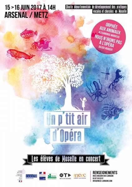 Pour cette année scolaire 2016/2017 en Moselle, la création musicale, le travail de composition et la découverte de l’opéra sont au coeur du projet. Le dispositif Charte de cette saison s’appuie sur le projet Trois compositeurs écrivent pour l’école, il s’agit de participer à une aventure d’envergure nationale. Spécialement conçus pour être chantés en classe, trois opéras ont été composés par Isabelle Aboulker, Julien Joubert et Alexandros Markeas. Les élèves des municipalités d’Algrange, Etzling, Fleury, Marly, Mecleuves-Lanceumont, Schoeneck, Solgne, Spicheren et Yutz ont ainsi travaillé autour des oeuvres Nous n’irons pas à l’opéra et Orphée aux animaux.