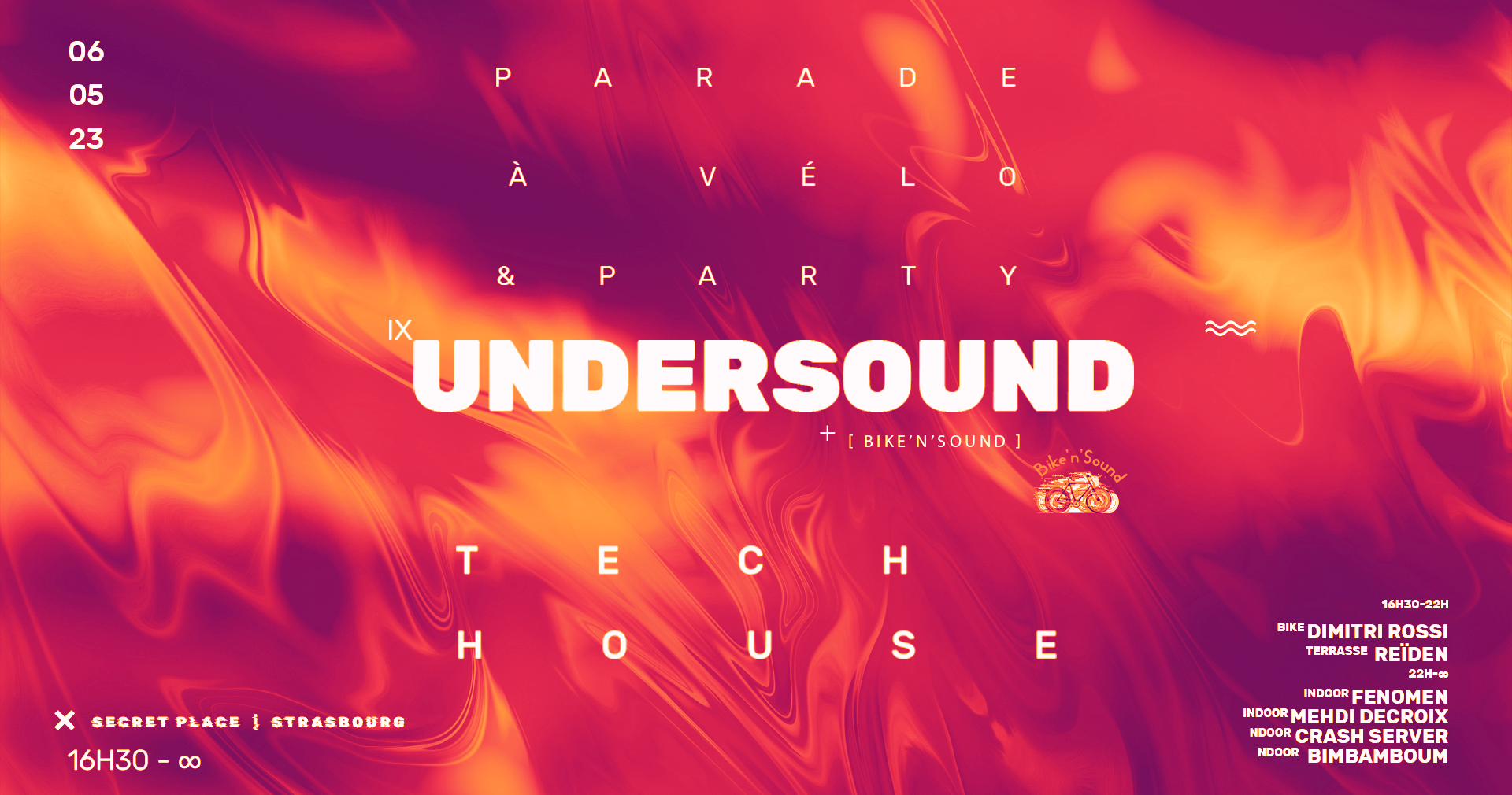 Bike'n'Sound x UNDERSOUND IX organise une parade à vélo le samedi 6 mai 2023 dans toute la Ville de Strasbourg, au rythme des musiques électroniques.