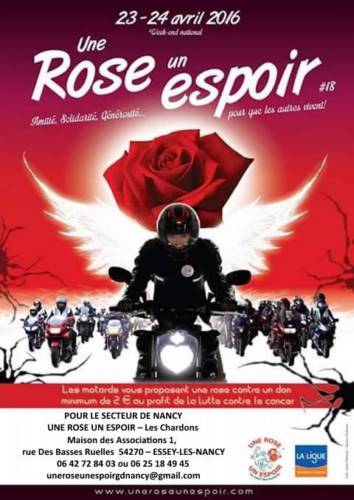 Chaque année, le dernier week-end du mois d’avril les motards et leurs passagères sont invités à participer à une grande collecte de fonds par l’Association Une Rose Un Espoir au profit de la lutte contre le cancer.