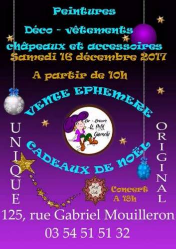 Nous organisons une vente éphémère avec des créateurs de la région, des idées originales pour vos cadeaux de Noël :). A l’issu de la vente un concert vous est proposé avec le groupe Mist Side, deux jeunes filles très talentueuses. Alors venez nombreux :)