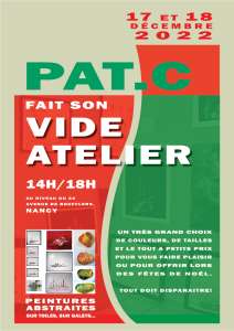 Je vide mon atelier de mes créations pour faire de la place et, à cette occasion je les propose à la vente à petits prix (différents formats de 10 cm x 10 cm à 110 cm x 90 cm ...) un grand choix de tableaux mais aussi de galets peints et autres réalisations...; Mon atelier se situe en appartement et je les présenterais dans trois pièces pour que vous puissiez faire votre choix. Alors, si vous avez envie de vous faire plaisir ou de faire vos cadeaux de Noël, Venez nombreux. Tout doit disparaitre! Horaires : de 14H à 18H. Adresse : EN VOITURE : au niveau du 34 Avenue de Boufflers; résidence du Parc de Boufflers, puis dirigez vous dans le grand bâtiment de 18 étages (dans ce bâtiment, suivez le fléchage mis à votre disposition jusqu'à l'atelier); EN BUS : ligne 4, de la gare, direction Champs le Bœuf, arrêt Messier , à 7 mn de la gare.