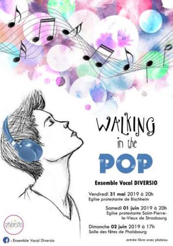 Après un programme intitulé "La passion selon Diversio" en mai 2018 qui, avec deux comédiens, racontait les souvenirs d’un vieil homme sur le point de mourir, puis un programme "Ivresse Amoureuse" en décembre 2018, autour de chansons d’amour et à boire, l’ensemble vocal Diversio vous propose cette fois-ci de marcher dans la Pop...