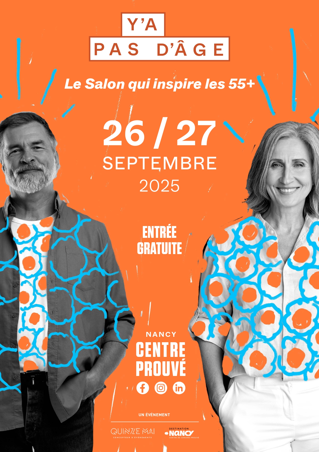 Un tout nouveau rendez-vous arrive à Nancy : le salon Y’a Pas d’Âge un événement entièrement dédié aux 55 ans et plus, organisé par l’agence Quinze Mai et DESTINATION NANCY. Deux jours pour découvrir, s’informer, s’inspirer… et casser les idées reçues sur l’âge !