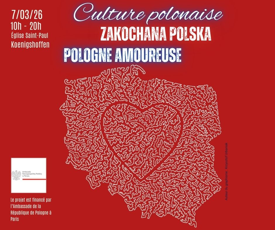 Le 7 mars, l’Église Saint-Paul de Koenigshoffen accueille une journée immersive dédiée à la culture polonaise, entre musique, poésie et voyage. Ouvert à tous, cet événement convivial propose ateliers créatifs, concert littéraire et présentation des lieux romantiques en Pologne.