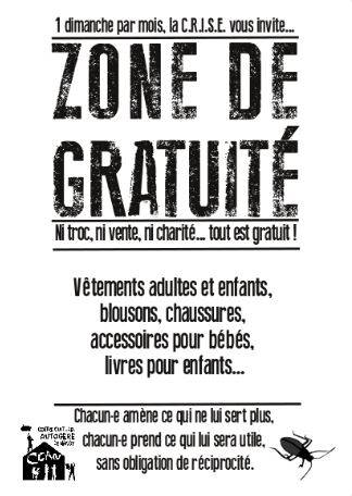 Zone de gratuité organisée par la C.R.I.S.E. tous les derniers dimanches du mois de 15h à 18h