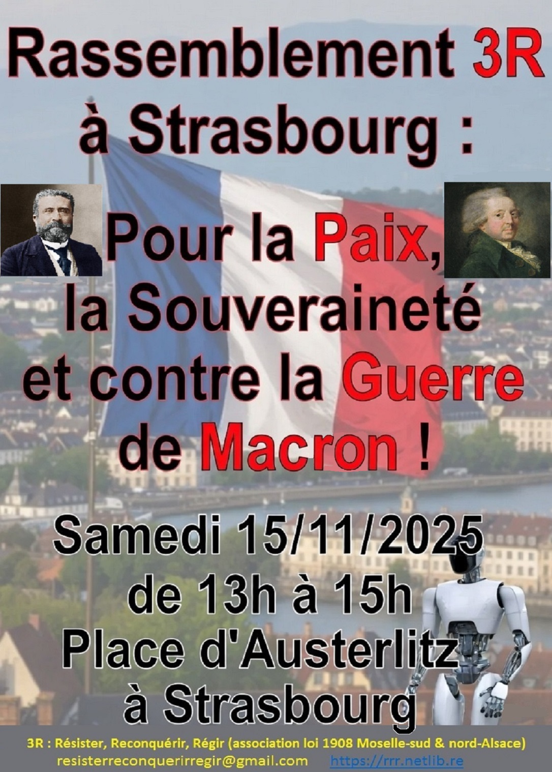 Rassemblement 3R à Strasbourg : Pour la Paix, la Souveraineté et contre la Guerre de Macron !