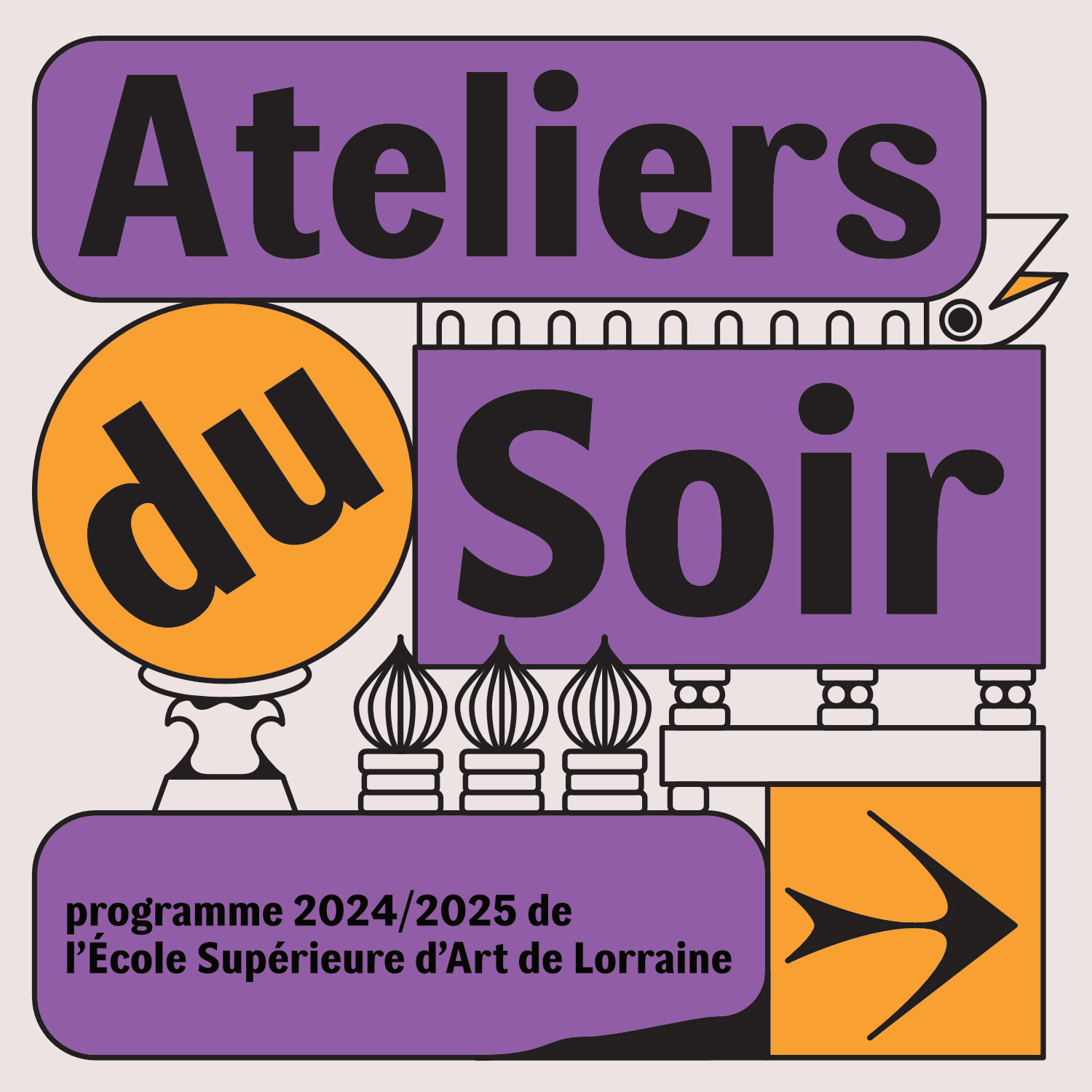 Destiné au public adulte, l’École Supérieure d’Art de Lorraine propose 10 Ateliers du soir, dispensés dans le cadre du temps libre de l’année universitaire, du lundi au jeudi de 18h30 à 20h30. De tous niveaux, ils sont encadrés par une équipe d’enseignants artistes, diplômé·es de l’ÉSAL dans un esprit de convivialité.