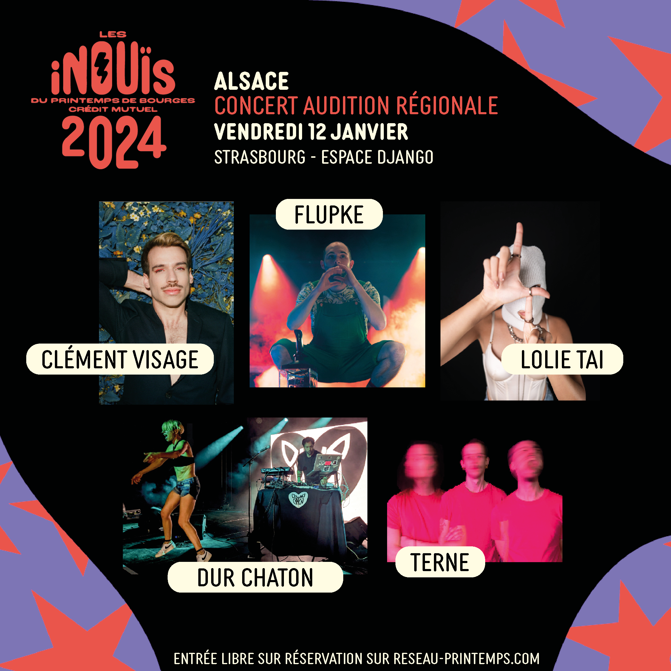 Concernant l’Alsace, nos fier·ères représentant·es sont Clément Visage, Dur Chaton, Flupke, Lolie Tai et Terne ! Venez les découvrir, les applaudir et plus que jamais, soutenir votre scène locale !