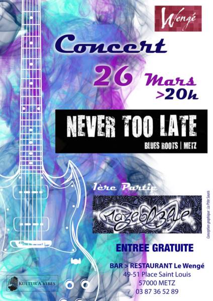 Kultur’a’Vibes, en partenariat avec le bar le Wengé, vous invite à découvir des activistes du Blues dans notre ville. On vous y attend ! Faîtes vivre la Musique.