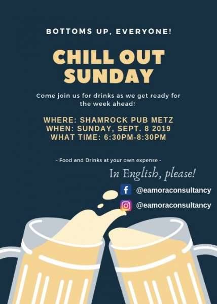 Let?s have drinks together at our next social event, Chill Out Sunday.