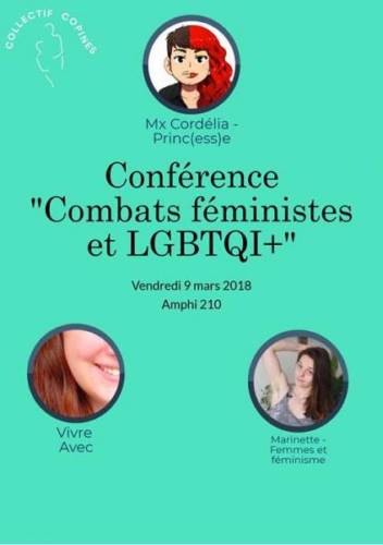 Dans le cadre de la semaine de l’égalité, le Collectif Copines organise une conférence sur les combats féministes et LGBTQI+, en présence de trois youtubeuses: