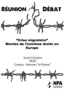Comment analyser aujourd’hui la montée des idées réactionnaires et les victoires électorales des partis d’extrême droite en Europe - Les militants du NPA vous invitent à en discuter en cette rentrée où la politique anti-migrants des gouvernements européens continue à faire la une de l’actualité.