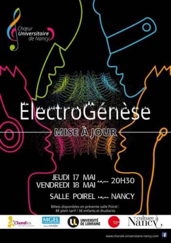 L’enjeu était de taille pour ces jeunes étudiants, amateurs de musique, souvent débutants mais passionnés de chant, issus de toutes les écoles et facultés de la ville : monter un programme de chant choral de qualité dans des arrangements vocaux ambitieux allant de 4 à 8 voix en reprenant des musiques pop, rock et électro pour créer un spectacle alliant mise en scène, percussions corporelles et danse. Ils avaient alors créé de toute pièce un spectacle d’une heure et quart intitulé Electrogénèse et travaillé tout au long de l’année scolaire grâce à des répétitions hebdomadaires et plusieurs week-ends de formation dans la campagne nancéienne.