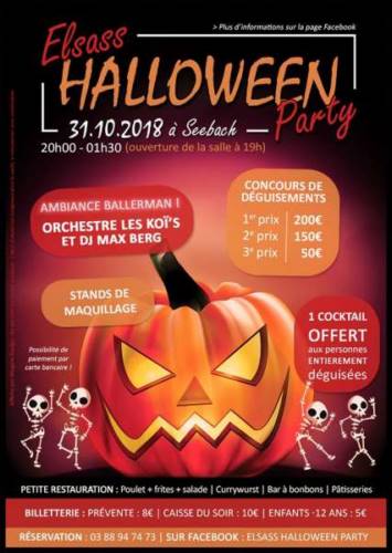 Découvrez une soirée hors du commun... Rendez-vous le 31 octobre 2018 à partir de 19h00 à la salle des fêtes de SEEBACH pour une soirée spéciale Halloween ! Décoration terrifiante et ambiance festive au programme ;)