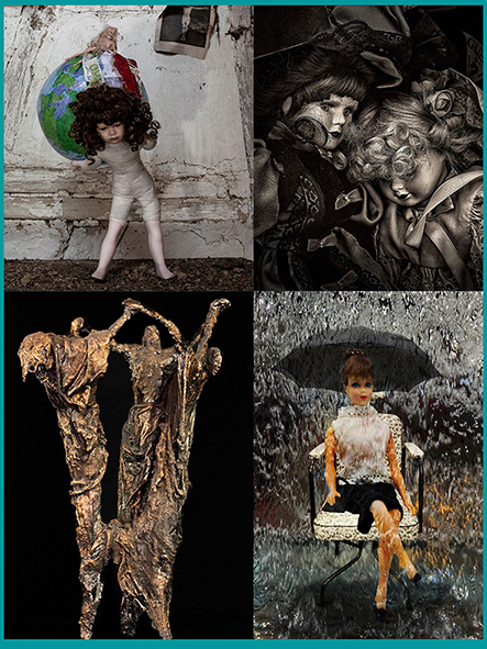 Cette exposition réunit trois photographes partageant le motif de la poupée, mis en scène sous forme de tableaux photographiques : la poupée devient selon les cas un motif fantastique, un sujet de phantasmes, ou bien elle s’humanisme par le rôle qui lui est assigné de support aux projections imaginaires… la poupée dans tous ses états se prête à des jeux scopiques, spéculaires et spéculatifs de tous ordres…