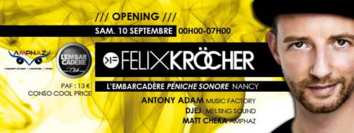 C’est avec une très grande fierté et un immense bonheur que L’EMBARCADERE Péniche Sonore se prépare et fait peau neuve afin de recevoir pour son premier opening le très talentueux DJ et PRODUCTEUR allemand FELIX KRÖCHER