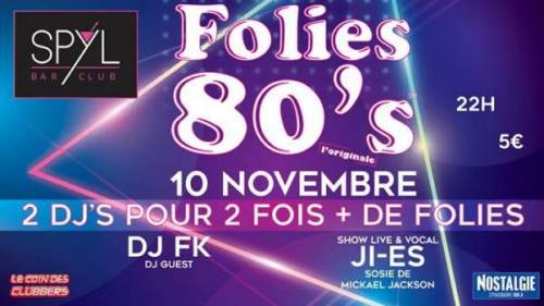 A cette occasion, Folies 80’s reçoit Dj FK, Dj Star des années 80’s, il sera accompagné de Ji-Es, sosie de Mickael JACKSON, Performer vocal et danseur.