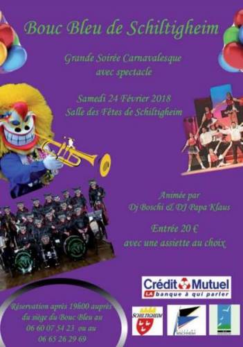 Le 24 février prochain aura lieu la Grande soirée Carnavalesque du Bouc Bleu de Schiltigheim.