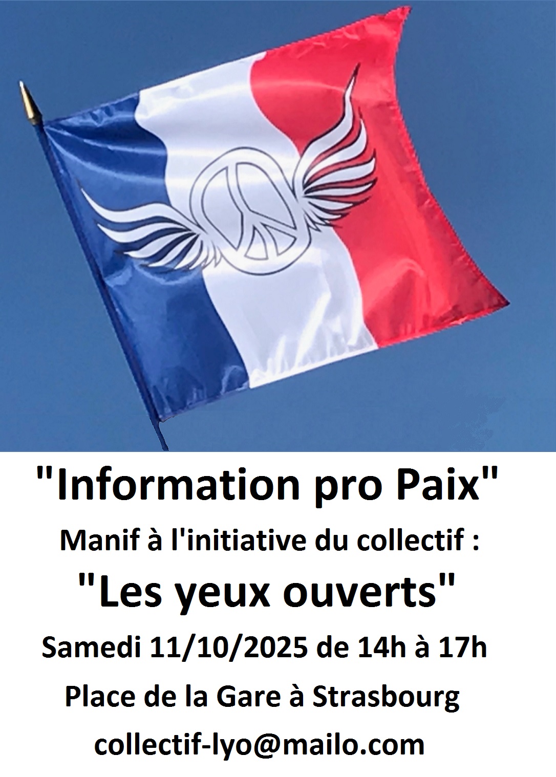 * C’est pourquoi le collectif Les Yeux ouverts tiendra un point d’information pour la paix :