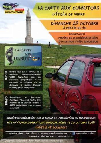 Merci de nous confirmer votre participation soit sur le forum de l’association, soit par facebook, soit par mail (generationtwingo@aol.fr) avant le mercredi 20 Octobre 2017.