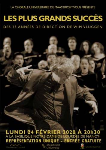En l’honneur des 25 ans de direction du chef de choeur Wim Vluggen à la tête de la Chorale Universitaire de Maastricht, nous interpréterons une sélection des plus belles oeuvres qui ont fait l’histoire et le succès de ce choeur néerlandais.