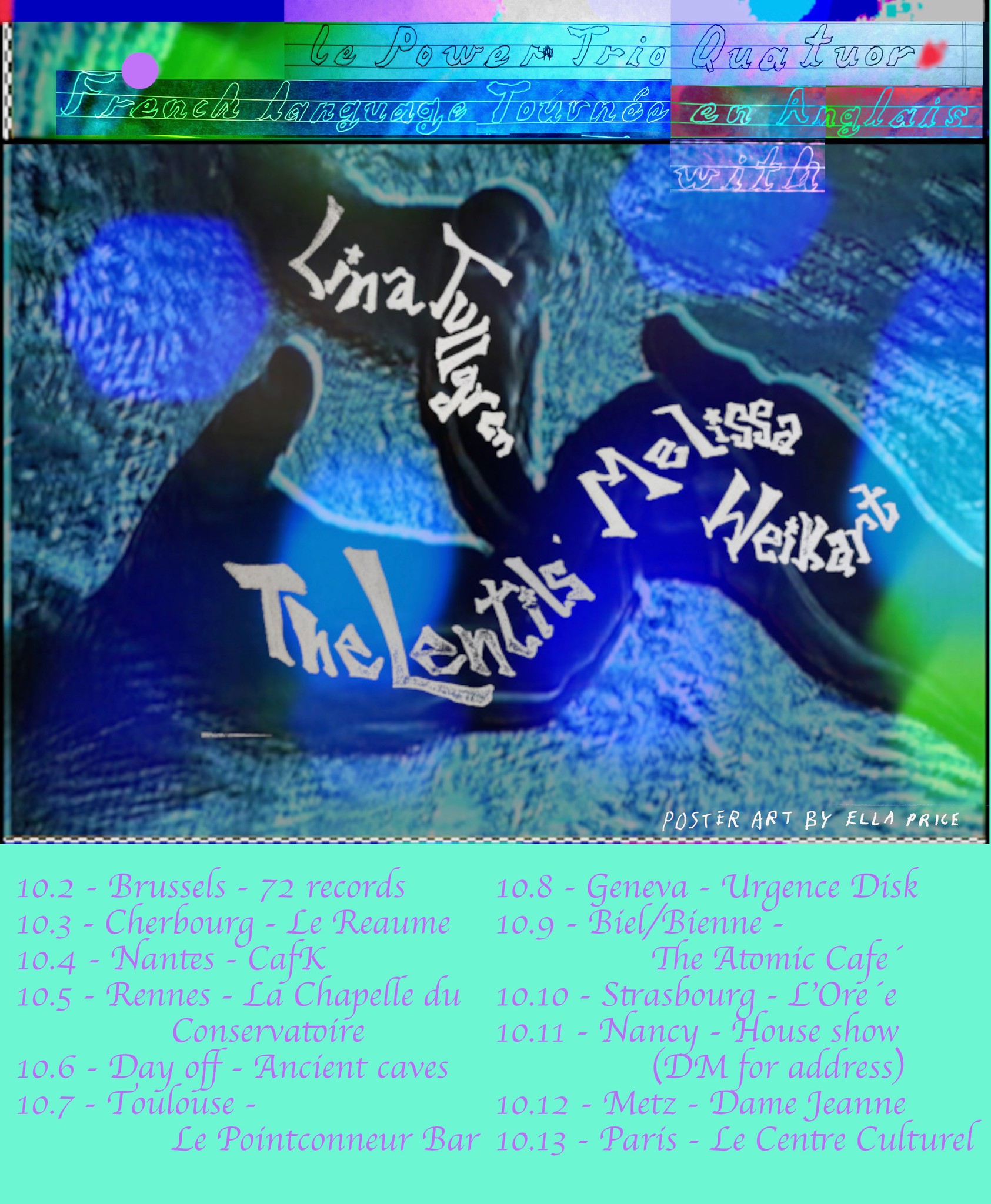 Trois projets en un seul concert, voilà l’idée de ce vendredi 10 octobre. Luke Csehak, Lina Tullgren et Melissa Weikart, accompagnéxs de Gaspard Scix à la batterie, parcourront leurs différents répertoires, s’échangeant les rôles et les instruments : batterie, guitare électrique, clavier, trompette et violon. Si the Lentils évoluent plutôt dans une musique folk lo-fi farfelue avec des paroles parfois humoristiques parfois douces-amères, l’univers de Lina Tullgren est quant à lui plus atmosphérique, explorant l’espace, la dualité, les relations et le divin avec une musique douce, intimiste et presque onirique. La musicienne franco-américaine Melissa Weikart propose elle une sorte d’avant-pop influencée par sa formation classique au piano, son amour du jazz et sa passion pour la chanson folk.