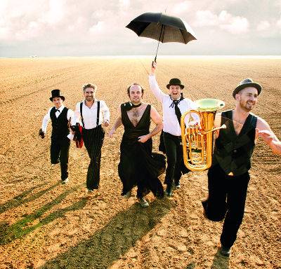 Les Fouteurs de Joie existent depuis plus de dix ans. Une longue amitié et une envie musicale commune lient les cinq membres de ce quintette romantico-burlesque, une sorte de boys-band humaniste, avec guitares manouches, ukulélé, banjo, contrebasse, accordéon, tuba, contrebasse et saxophone en bandoulières. Leur spectacle voit défiler une galerie de personnages hauts en couleurs et en stupeurs : ouvriers en pleine déclaration d’amour à leur patron, dame de la haute en robe Chanel, hommes faciles complètement obsédés et autres créatures plus vraies que nature. À la fois tendres, burlesques et délirants, Les fouteurs de Joie répondent à la promesse d’insuffler auprès de chaque spectateur un vent de fraîcheur. Le groupe forme un puissant antidote à la morosité, et emporte le public dans la fièvre d’une proximité complice et joyeuse.
