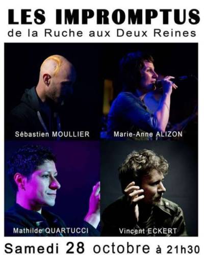 Bienvenue aux Impromptus de La Ruche ! Un concert exceptionnel et acoustique avec Marie-Anne Alizon, Vincent ECKERT musiques, Sébastien Moullier, Cyril Noël, Martin Spannagel, Sophie Baer and more !