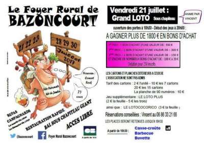 Loto organisé sous chapiteau par le Foyer Rural de Bazoncourt et animé par Vincent dans le cadre de la Fête Patronale et du Jambon.