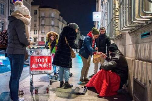 Distribution de paniers repas ? et vêtements ??? aux sans-abris de la ville de Nancy.