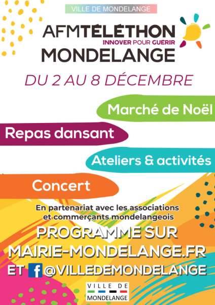 Du 2 au 8 décembre 2019, la ville de Mondelange, ses associations et ses commerçants vous propose de nombreuses activités et manifestations en faveur du Téléthon.