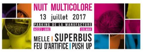 Des concerts, un incroyable feu d’artifice, près de 10 000 personnes présentes : la nuit multicolore est LE spectacle de plein air gratuit à ne pas manquer ! La Ville de Colmar offre aux Colmariens une soirée exceptionnelle marquée notamment par la présence sur scène - en première partie de soirée - du groupe de renommée internationale Superbus !