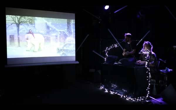 Les musiciens Lys Cogui et Cyril Catarsi sont tombés sous le charme du film d’animation The Bear, tiré d’un livre pour enfants de Raymond Brigg contant la rencontre entre une petite fille et un ours polaire. Pour partager ce coup de c?ur, ils ont transporté sur scène son atmosphère magique en se réappropriant, avec leur propre sensibilité, son envoûtante bande-son : au fil de la projection, voix, piano, guitares, chansons, samples et bruitages joués en direct forment un spectacle vivant qui donne une nouvelle dimension à The Bear et nous plonge littéralement au sein de son univers poétique, drôle et touchant. Un voyage dédié à l’amitié, à la nature, à la musique et tout simplement à la beauté.
