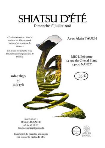 Le shiatsu est un art ancestral japonais issu de la médecine traditionnelle chinoise. Cette forme de massage vise à rééquilibrer la circulation des énergies dans les méridiens et points d’acupuncture par le toucher, en alternant pressions lentes et rythmées. Le shiatsu entretient le corps, apaise les émotions, calme l’esprit et permet de conserver la santé. C’’est un bon outil de prévention.